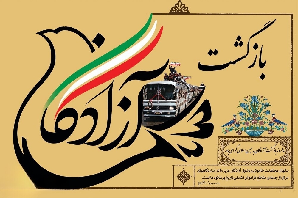 فرارسیدن سالروز بازگشت مقتدرانه آزادگانِ سلحشور و پیروز را به آغوش گرم میهن اسلامی، به پیشگاه امام عصر(عج)، مقام معظم رهبری(مدظلهالعالی)، ملت غیور ایران و به ویژه شما قهرمانانِ حماسهسازِ سالهای اسارت، تبریک و تهنیت عرض مینمایم.